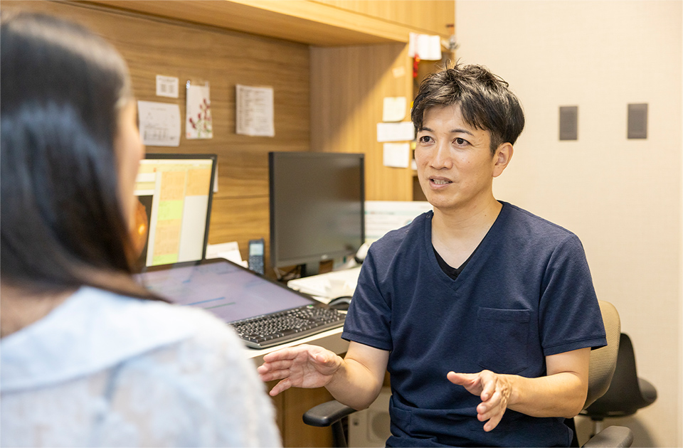 竹下先生:まずは、患者さまが不安に感じないように、きちんと説明をすることを心掛けています。特に初診の方や手術を受けられる方には、時間をしっかり取ってお話しします。患者さまが納得した上で治療を進めるように心がけています。一度の受診でできることは何でもして差し上げたいんです。無理強いすることなく、患者さまの希望に寄り添って治療を進めています。